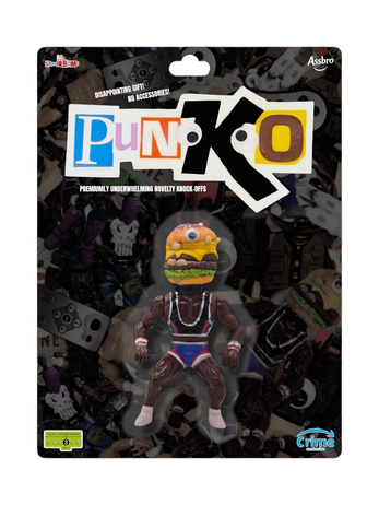 A ZINE CONTAINING 20 OF THE FINEST PUNKO ACTION FIGURES ON CARD BACK - EVERY SINGLE ONE IS A REAL, HANDMADE ORIGINAL ART PIECE KITBASHED FROM POPULAR TOYS OF THE '80S AND '90S